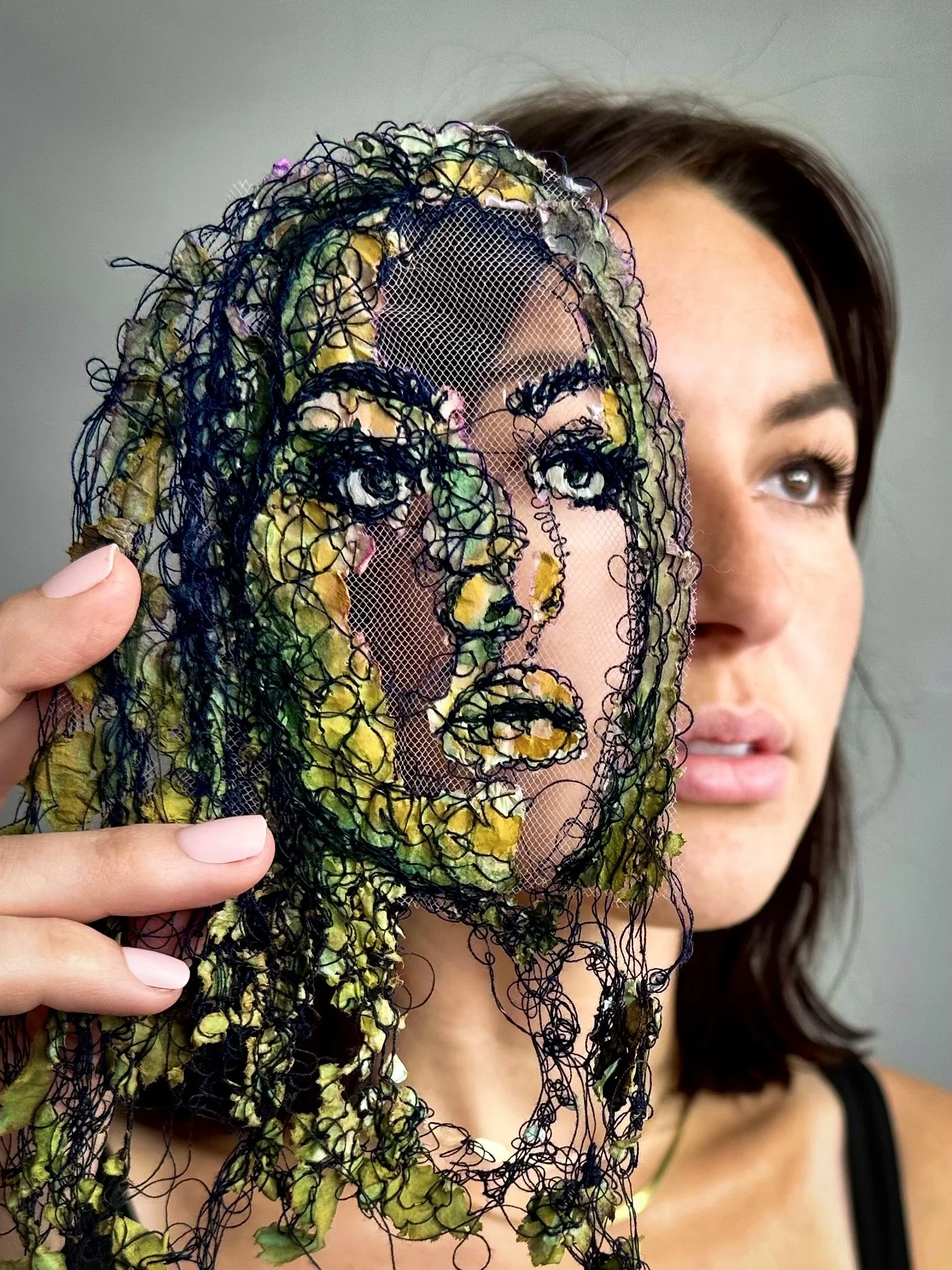 Her recent work blends free motion embroidery with digital performance, using the screen as both mirror and stage. By engaging with ambient intimacy, the connection formed through digital presence, Kole reflects on the performance of self in an age of constant visibility. These pieces exist as both physical objects and ephemeral gestures, grounded in a desire to reclaim the female gaze and explore the vulnerability of being seen. Through this duality, Kole creates a deeply personal and political dialogue around embodiment, transformation, and control.